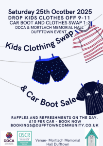 For more information or to book your car boot space email bookings@dufftowncommunity.co.uk